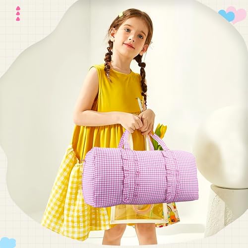 • ✤ Fabric:The Duffle Bag for Kids is made of seersucker, it is lightweight, durable, and very breathable. The duffel bag is easy to clean after use and durable.Easy to wash and fast to drying. Good skin-friendly properties.