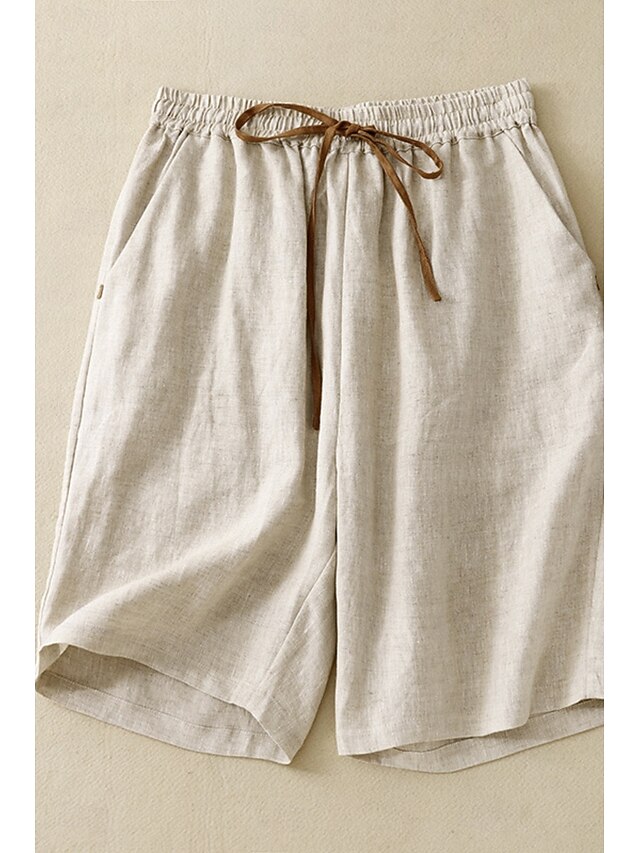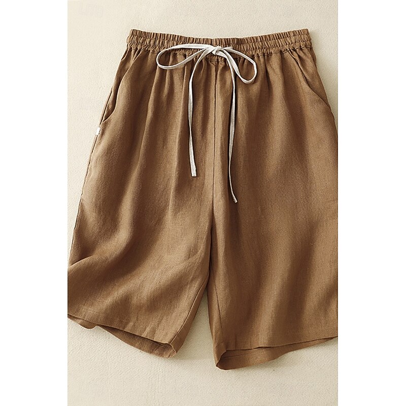 More information about Women's Cotton Linen Shorts Shorts Slacks Streetwear Casual Short Natural Plain Pocket Elastic Drawstring Design Comfy Outdoor Comfortable Street Casual Daily Apricot Black Brown Summer Regular Fit
