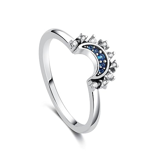SLOONG 14K Gold Plated Sun and Moon Ring Set Sparkling Sun Ring and Blue Moon Ring Best Friend Friendship Promise Rings Stackable Rings for BFF Women Adult 6
