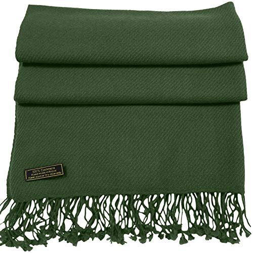 CJ Apparel Olive Green 100% Cashmere Shawl Pashmina Scarf Wrap Stole Head Wrap Hand Made in Nepal New 1