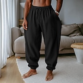 More information about Men's Linen Pants Trousers Summer Pants Baggy Pants Harem Pants Drawstring Elastic Waist Plain Comfort Breathable Full Length Outdoor Casual Holiday Vacation Fashion Black Green