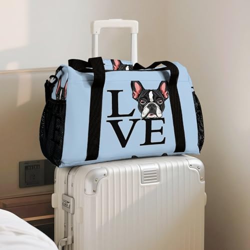 I Love Boston Terriers Gym Bag Travel Duffle Bags Shoulder Carry On Weekender Bag Hangbag for Women Men 4