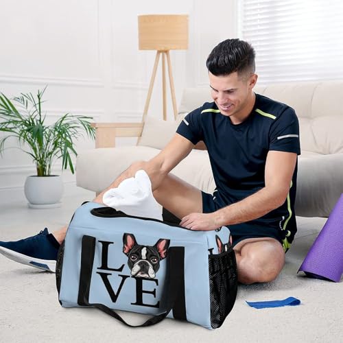 I Love Boston Terriers Gym Bag Travel Duffle Bags Shoulder Carry On Weekender Bag Hangbag for Women Men 7