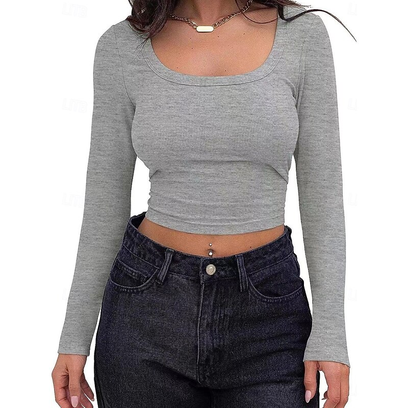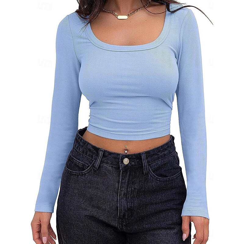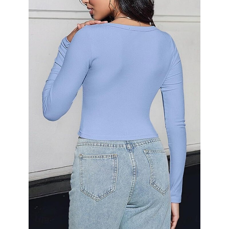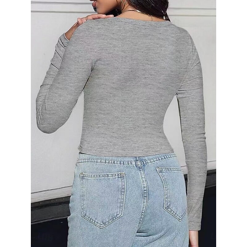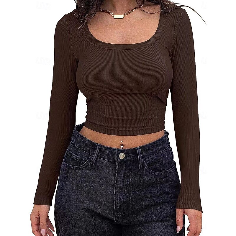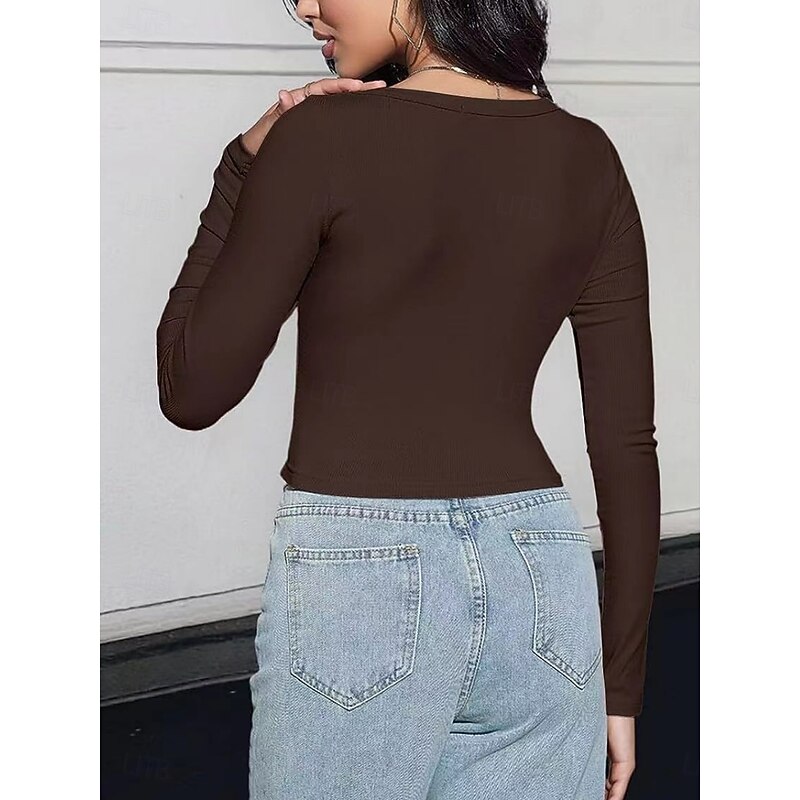 More information about Women's Blouse Solid Color Stylish Casual Long Sleeve Scoop Neck Regular Tops Daily Ruched Brown Green Gray Light Blue Spring Fall Winter