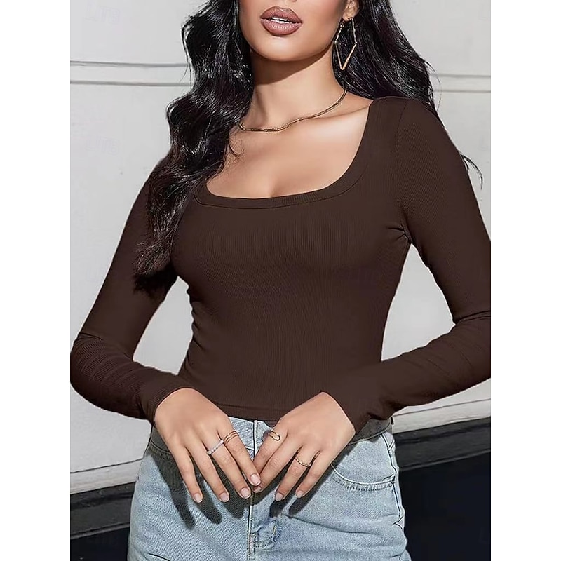 $9.49 - Women's Blouse Solid Color Stylish Casual Long Sleeve Scoop Neck Regular Tops Daily Ruched Brown Green Gray Light Blue Spring Fall Winter 2025. Shop for cheap Plain Tops online? Buy at lightinthebox.com on sale today!
