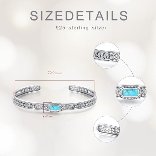 • This bangle bracelet features genuine turquoise and 925 sterling silver, each piece is Lead-free and skin-friendly. S925 stamped inside the bracelet.