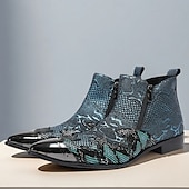 More information about Men's Blue Snakeskin Pointed Toe Ankle Boots – Rock Star Cowhide Zip-Up Boots for Concerts, Festivals and Themed Occasions