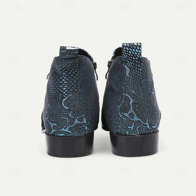 Men's Blue Snakeskin Pointed Toe Ankle Boots – Rock Star Cowhide Zip-Up Boots for Concerts, Festivals and Themed Occasions 3