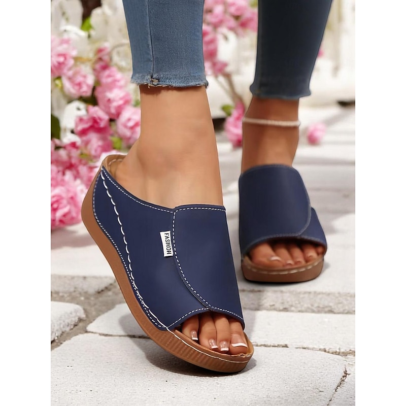 HOT ! Women's Light Blue Wedge Sandals – Open-Toe Slip-On Sandals with Soft Sole for Garden Walks and Summer Casuals