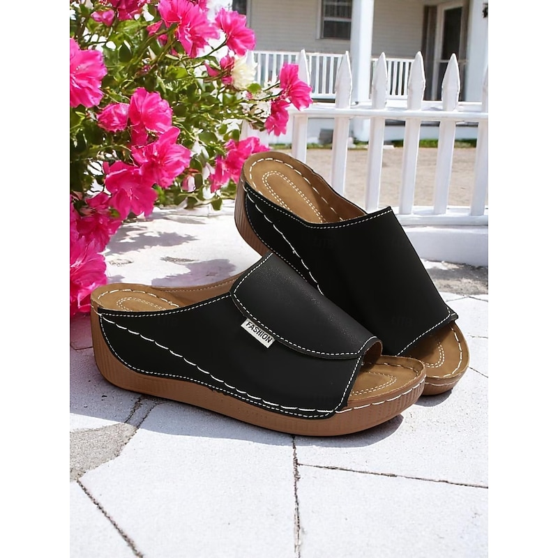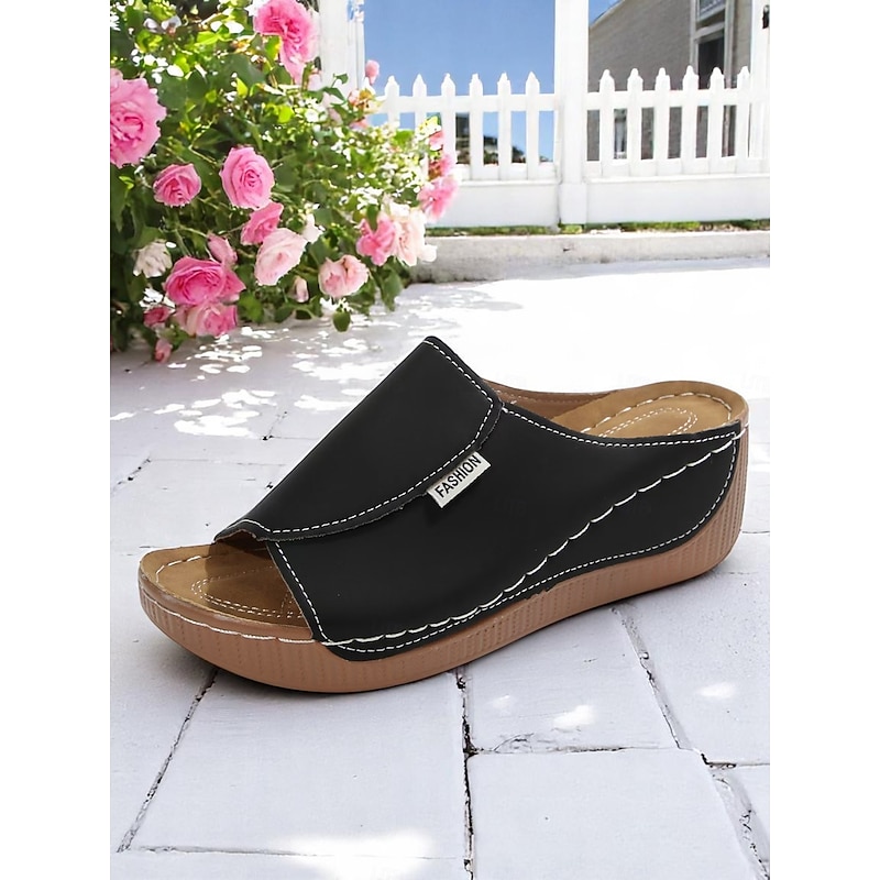 Highlights - Made with high-quality faux leather - Features a stylish round or open toe design - Durable rubber outsole - Stay on trend in 2024 with wedge sandals