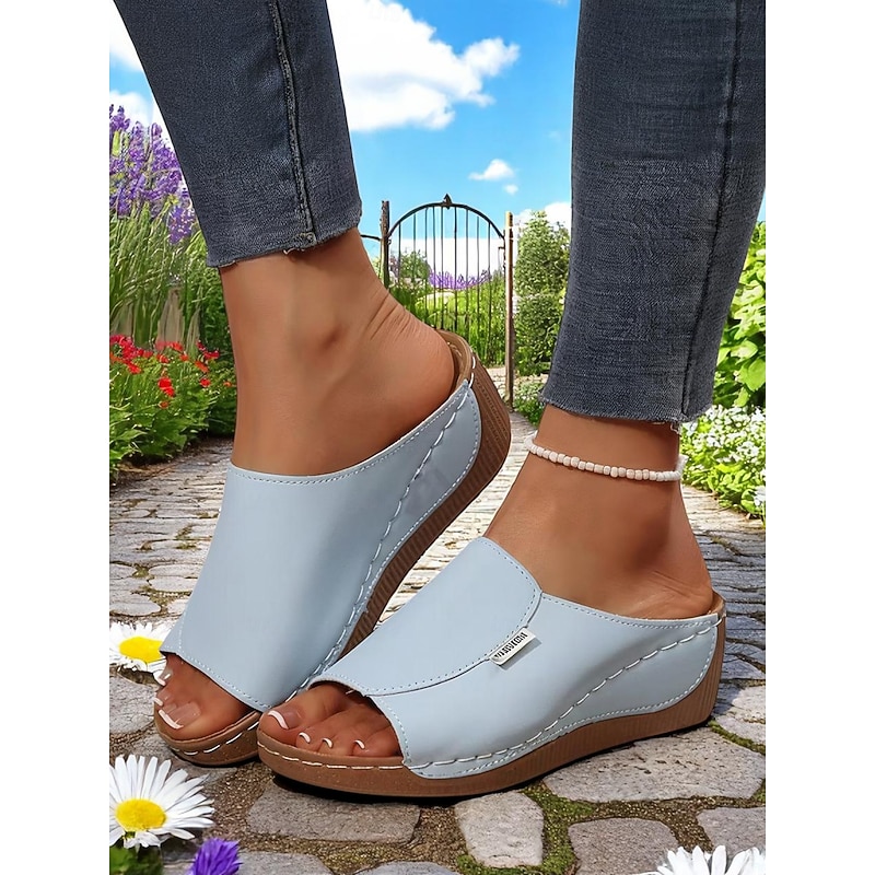 Women's Light Blue Wedge Sandals – Open-Toe Slip-On Sandals with Soft Sole for Garden Walks and Summer Casuals 24