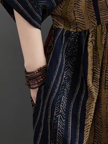 • FEATURES: This baggy dress features a chic and vintage striped print, plus size naturecore dress.High waist with flowy loose cut, round neck and short sleeves offer a simple yet comfortable design, equipped with side pockets can carry small items. Plus size boho dress
