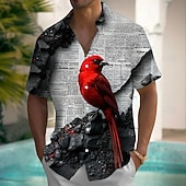 HOT ! Men's Bird Red Cardinal Shirt Summer Shirt Button Up Shirt Short Sleeve Vintage Retro Outdoor Vacation Summer Spring Turndown 3D Print Collared Shirts Front One Pocket Black