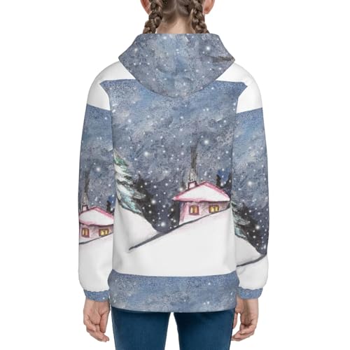 Watercolor Winter Landscape For Christmas Kid Hoodies Boys Zip Up Sweatshirts Girls Pullover with Pocket 5