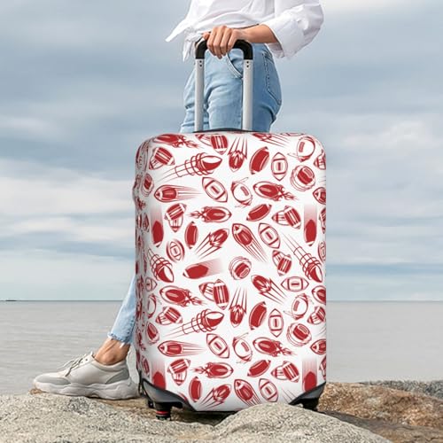 HOT ! Red Football Print Luggage Cover For Suitcase,Washable Elastic Travel Suitcase Protector With Zipper Closure And Bottom Buckle – Fits 18-32" Luggage-X-Large