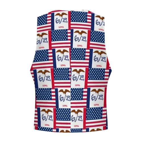 Flag of Usa And Iowa Suit Vest for Men Waistcoat Dressy V Neck Button Down Sleeveless Business Jacket Coat 2