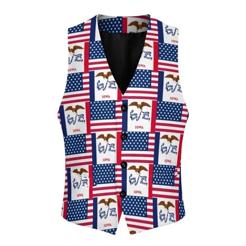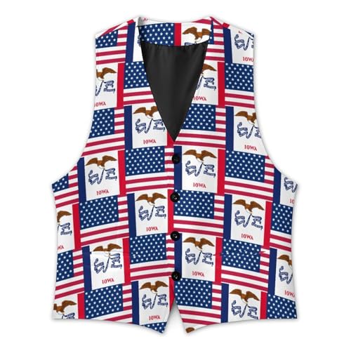 Flag of Usa And Iowa Suit Vest for Men Waistcoat Dressy V Neck Button Down Sleeveless Business Jacket Coat 6