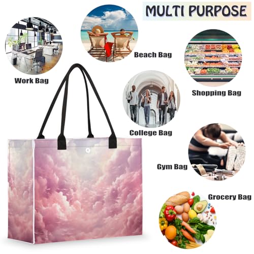 HOT ! Pink Cloud Sun Tote Bag for Women Large Beach Bag Reusable Tote Bags for Work Travel Beach Shopping