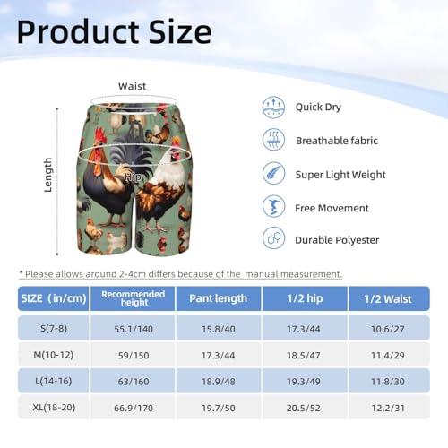 Rooster and Chicken Youth Beach Pants, Soft and Breathable, with Drawstring Waist, Suitable for Sports and Leisure. 6