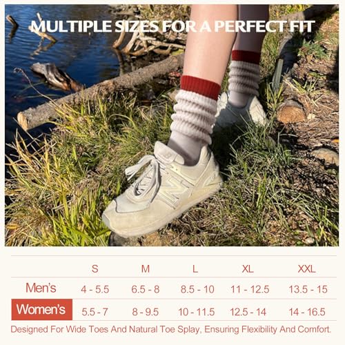 • Relieve Pressure & Long-lasting Comfort:This hiking sock can more effectively relieve leg pressure. While walking, it utilizes body weight to stretch and separate the toes, aligning them in the correct position to prevent muscle atrophy resulting from improper toe positioning, and restoring the feet to their natural shape. Additionally, it can alleviate swelling and pain in the feet and legs, enabling you to truly experience the comfort of your toes naturally spreading apart.