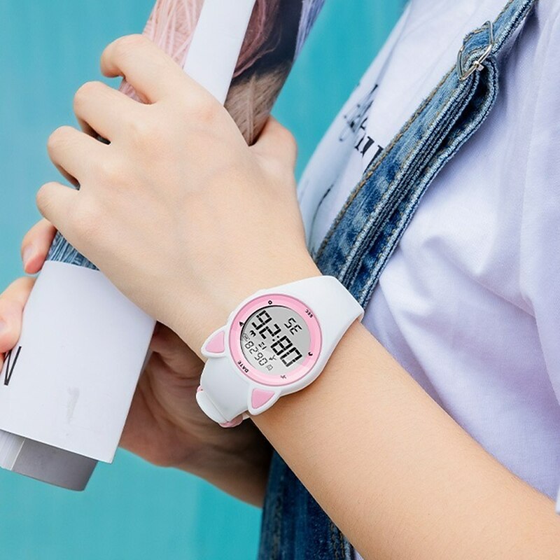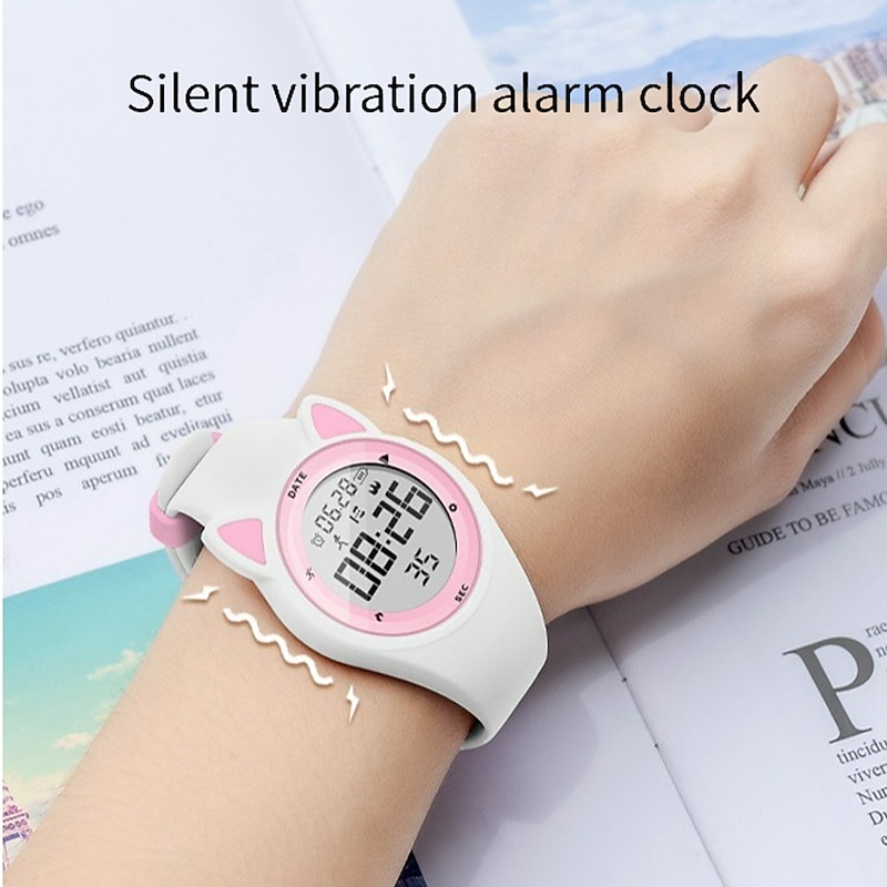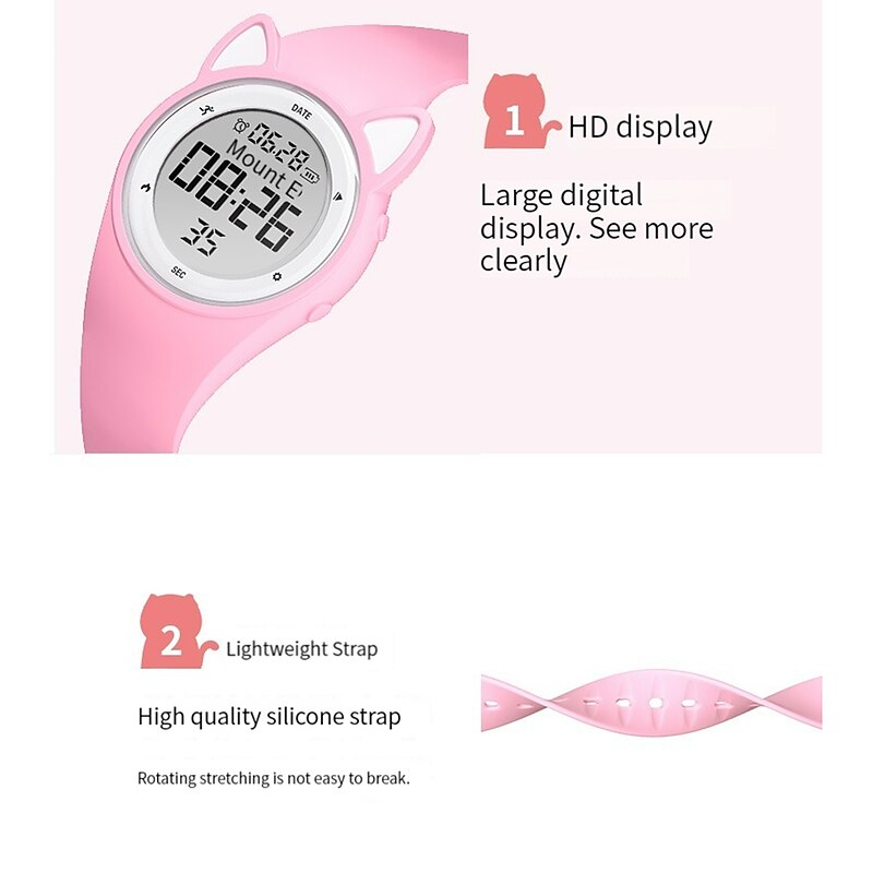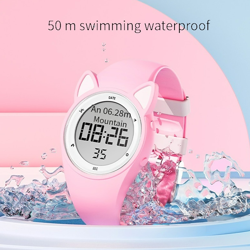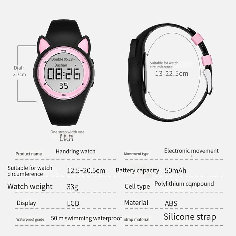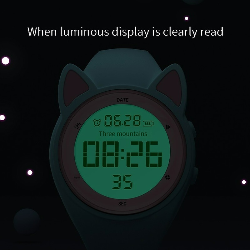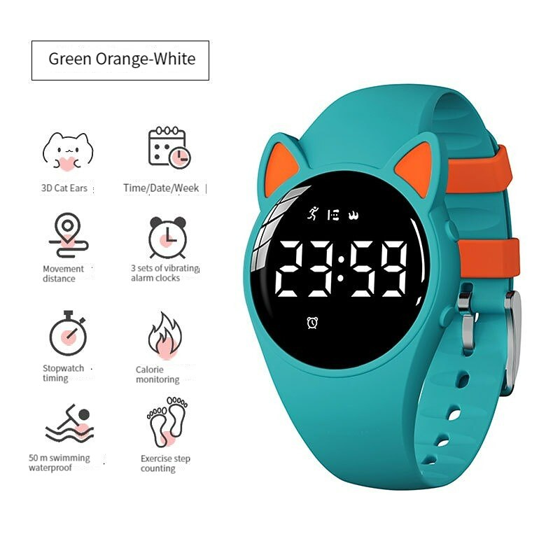 Highlights -Keep your Kids Fit with our Sport Watches: Our fitness tracker makes it easy to track all of the important exercise data such as step counts, calories, mileage, and more! -Stay on Schedule with Silent Vibration Alarm: Keep your kids on track with multiple fixed alarm clocks that can be manually set to remind them to study or rest on time. Our vibration design ensures that others won't be disturbed - perfect for students! -Convenient Charging Anywhere: Our watch comes with a USB interface for charging so you can easily charge your watch with any USB adapter such as a smart phone adapter or computer. And with a battery life of 15 days+, you won't have to worry about constantly charging. -Durable and Safe for Kids: Our environmentally friendly ABS watch case and high quality stainless steel material make the watch durable. The food grade, environmentally friendly soft silicone watchband is gentle on your child's wrist while effectively protecting it. -Waterproof for Everyday Use: Our watches are waterproof up to 50M, meaning your child can wear them while washing their face, hands, or even out in the rain! Just keep in mind that it's not recommended for swimming.