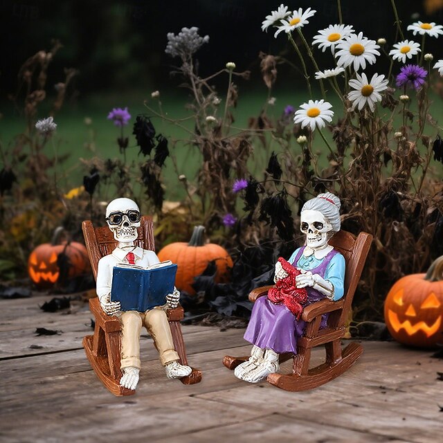 $20.99 - 2PCS Halloween Resin Reading Skeleton Elderly on Rocking Chair Figurines, Spooky Outdoor Yard, Lawn, Planter, and Desktop Decorations 2025. Shop for cheap Halloween Hanging & Tabletop Decorations online? Buy at lightinthebox.com on sale today!