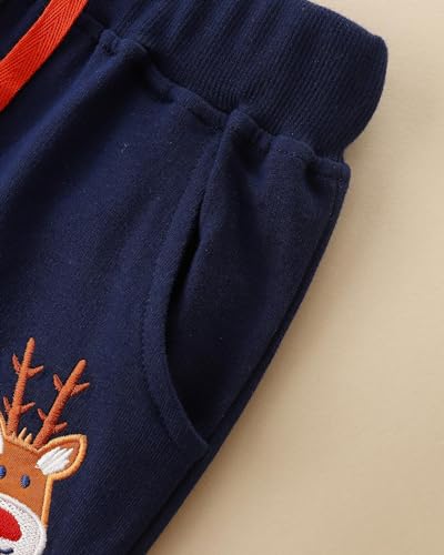 Meufam Toddler Boy Sweatpants Kids Sport Jogger Cotton Casual Santa Reindeer Embroidered Lounge Playwear Sweats Pants 5