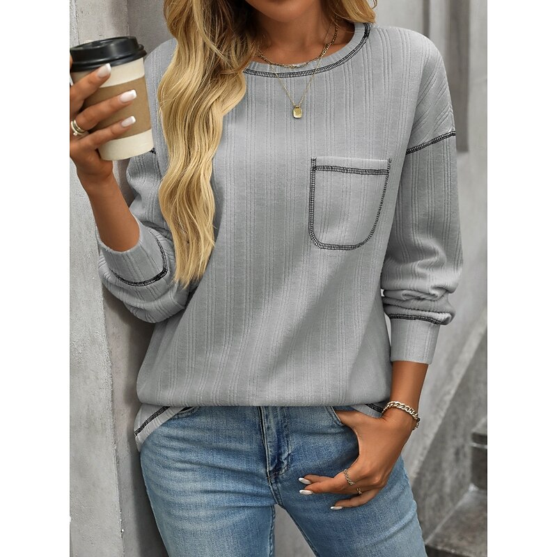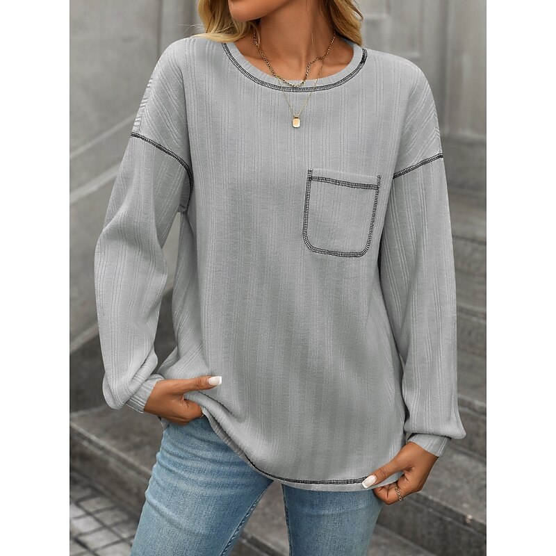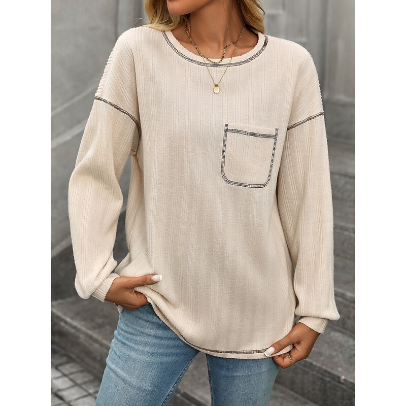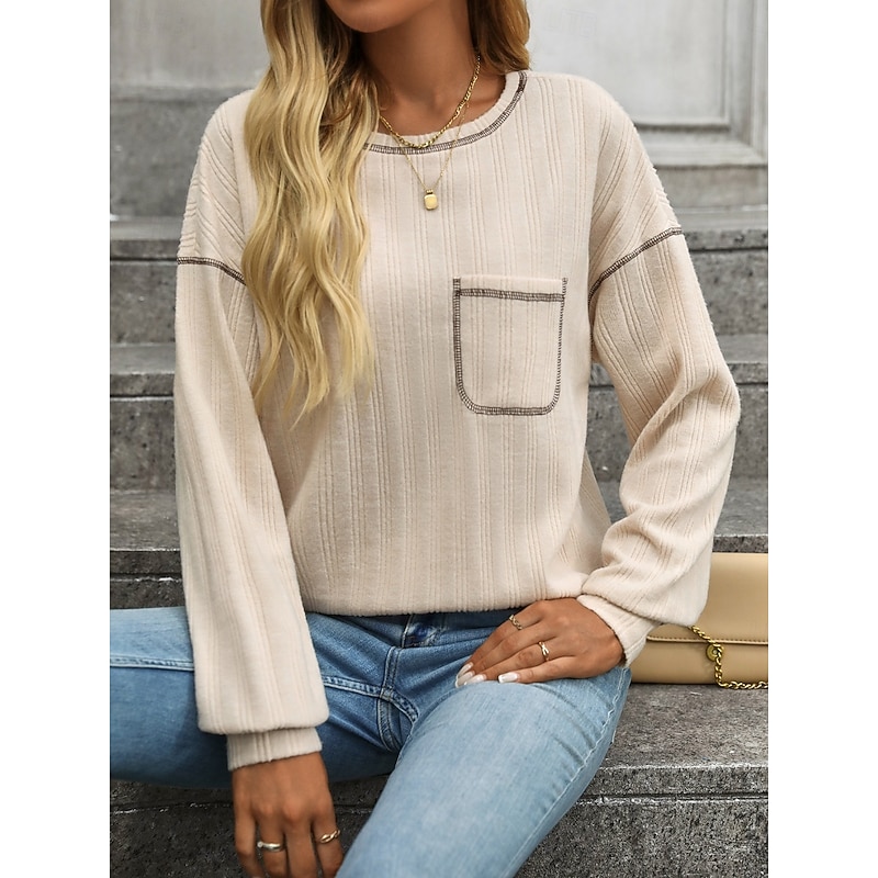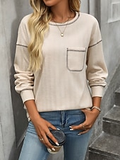 More information about Women's Texture Sweatshirt T Shirt Plain Fashion Modern Casual Long Sleeve Crew Neck Regular Tops Daily Weekend Pocket Beige Gray Summer Spring