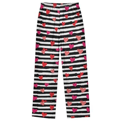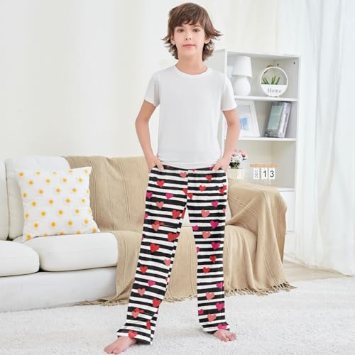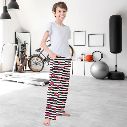 Boy's Pants Red Heart Black Stripe Jogger Pants Elastic Waist Long Bottoms Trousers with Pockets 6-14 Years 6