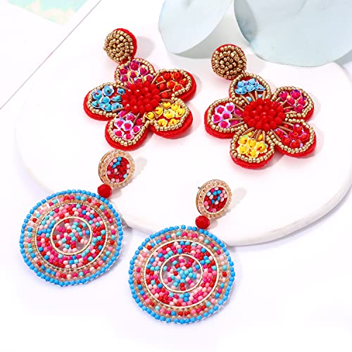HOT ! 4 Pairs Beaded Earrings for Women Boho Geometric Beaded Dangle Earrings Statement Pineapple Flower Drop Earrings Colorful Summer Earrings Set Jewelry Gift