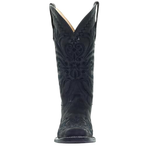 Corral Boots Women's All Black Tooled Inlay Square Toe Boots 5