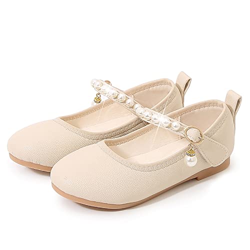 Girls Single Shoes Kids Open Toe Ankle Strap Dress Shoes Wedding Party Sandals for Toddler Kids Princess Active Slides (Beige, 28 Little Child) 1