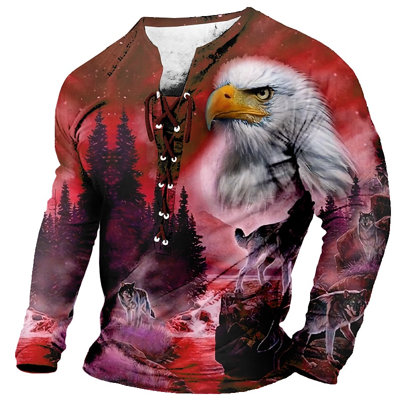 More information about Eagle And Wolves Casual Mens 3D Shirt For | Green Winter Polyester | Men'S Tee Graphic Animal Collar Clothing Apparel 3D Print Daily Long Sleeve Lace Up Fashion Designer