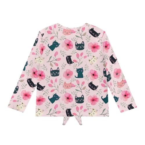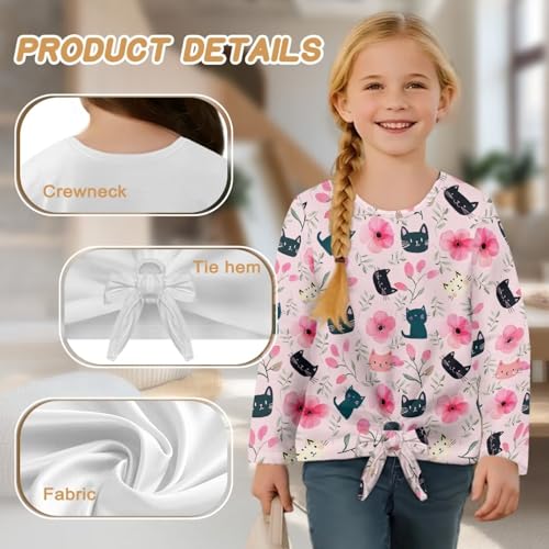 Long Sleeve T-Shirt for Girls 5-12 Years Old Casual Crewneck Tee Shirts Pullover Tie Front Crop Top Fall Outfits 5