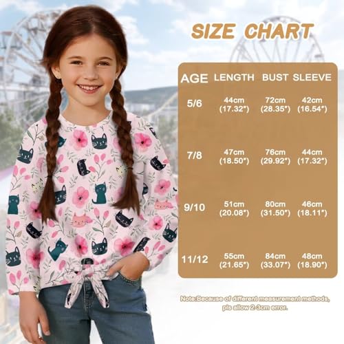 HOT ! Long Sleeve T-Shirt for Girls 5-12 Years Old Casual Crewneck Tee Shirts Pullover Tie Front Crop Top Fall Outfits