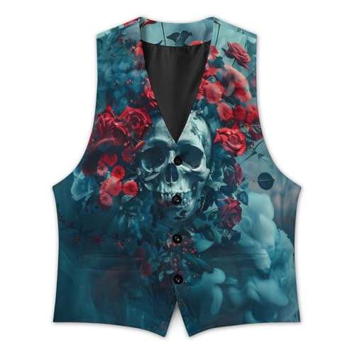 Rose Skull Men's Suit Vest Waistcoat Vests Formal Dress with 2 Pockets for Business Casual Tuxedo 4