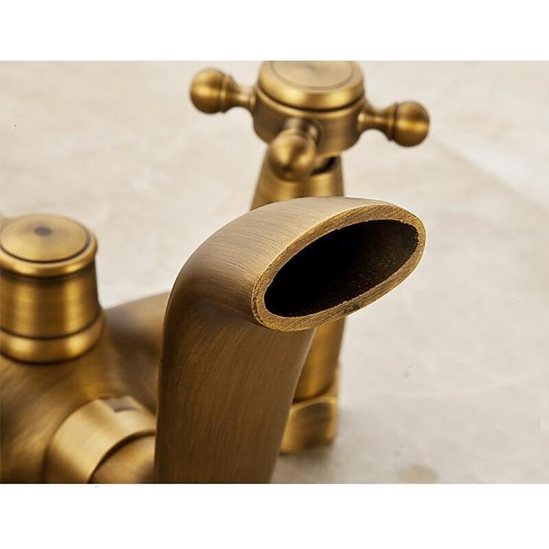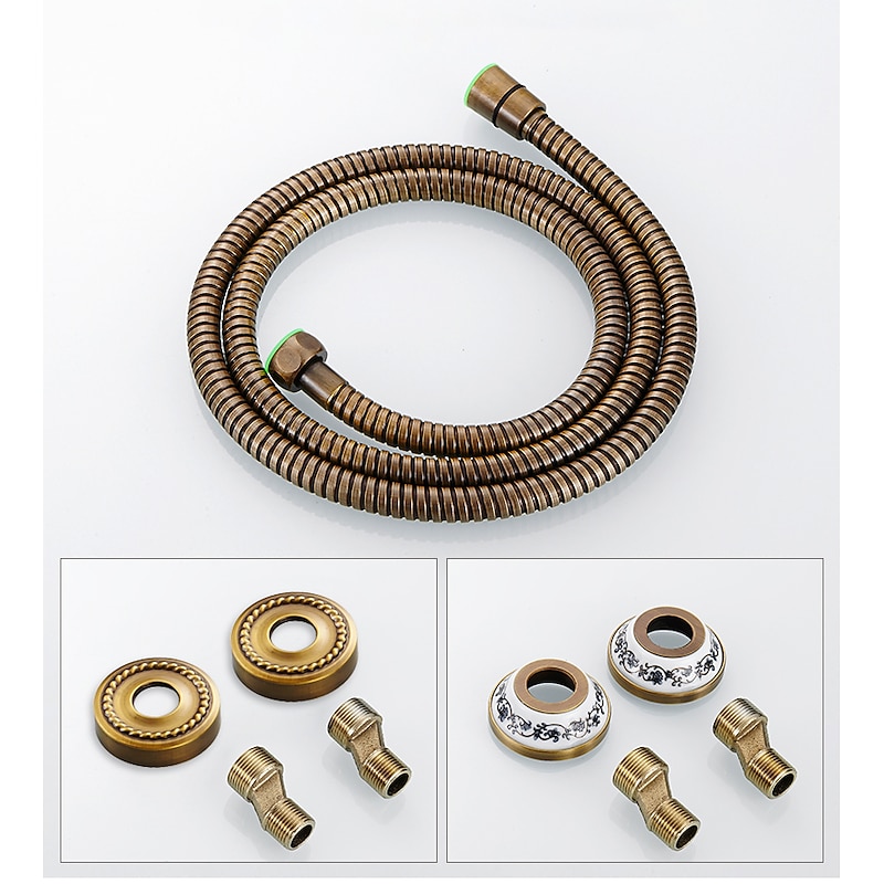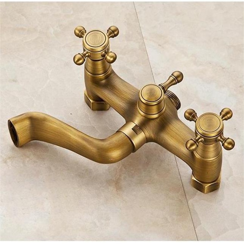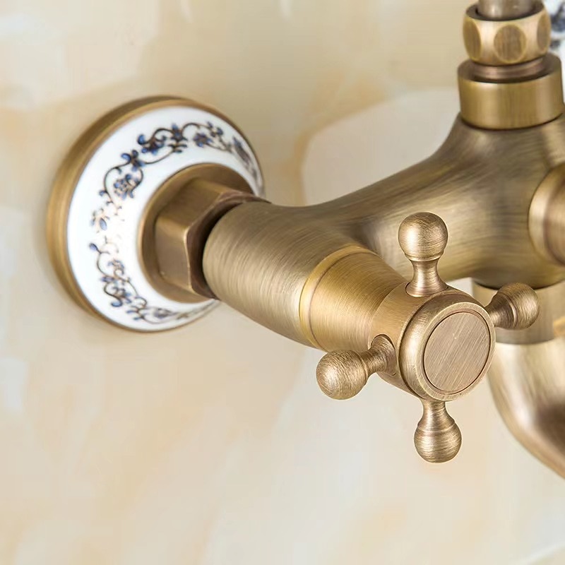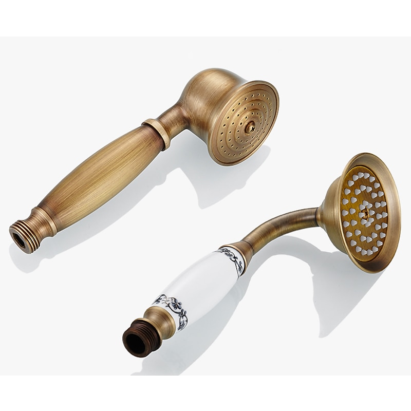 More information about Traditional Shower System Faucet Set with Bathtub Spout with Heldhand Handshower Spray, Vintage Brass Dual Spout Wall Mounted Ceramic Mixer Valve