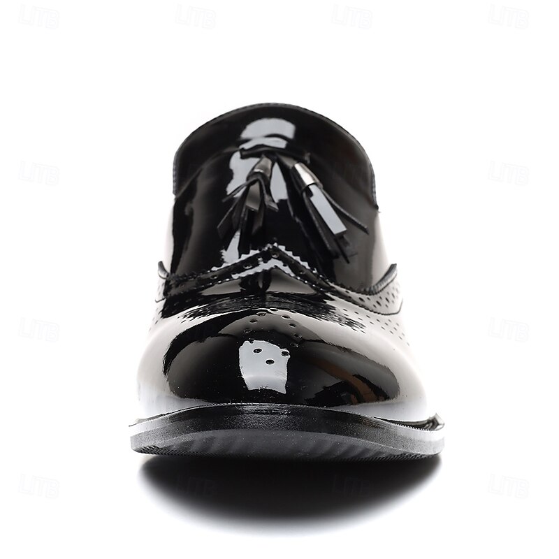 Men's Black Patent Leather Tassel Loafers – Sleek Formal Dress Shoes with Brogue Detailing 14