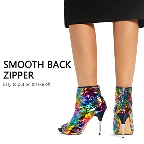 CAMSSOO Women's Colorful Sequin Stiletto Boots Peep Toe Rear Zipper Sexy Dress Wedding Glitter High Heels Sandals Ankle Boots 4