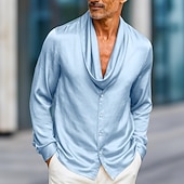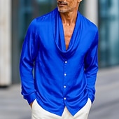 More information about Men's Shirt Satin Shirt Dress Shirt Casual Shirt Button Up Shirt Prom Shirt Plain Formal Wedding Light Blue Royal Blue Gold Gray Long Sleeve Shawl All Seasons Clothing Apparel