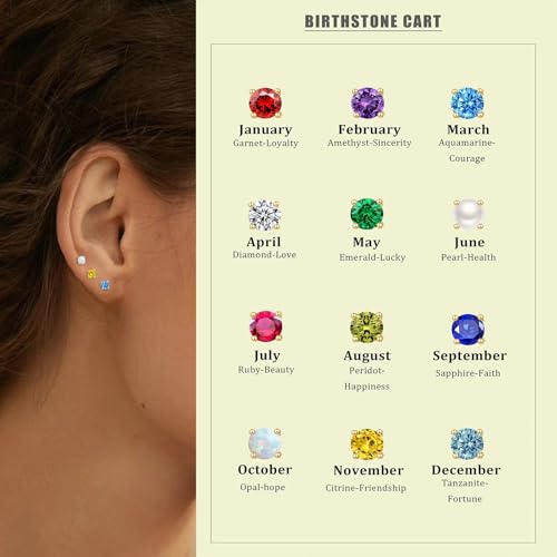 • Birthstone & Flat Back Earrings Design: Our stud earrings are made of 4mm round birthstones with a flat back design that makes the ears more comfortable & safe even when sleeping. This dainty small design earrings is perfect for wearing alone or as an accessory with other earrings.The helix part needs to be twisted into the bottom of the flat back, so there will be color difference, but it does not affect other things, please read carefully before purchasing