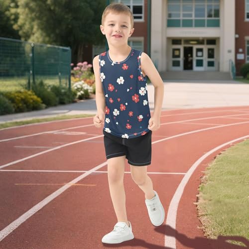 JUNZAN Retro Colorful Flowers Navy Blue Tank Tops for Children Sleeveless Kids Vest Outdoor Tshirts for Swim Beach 3T 6