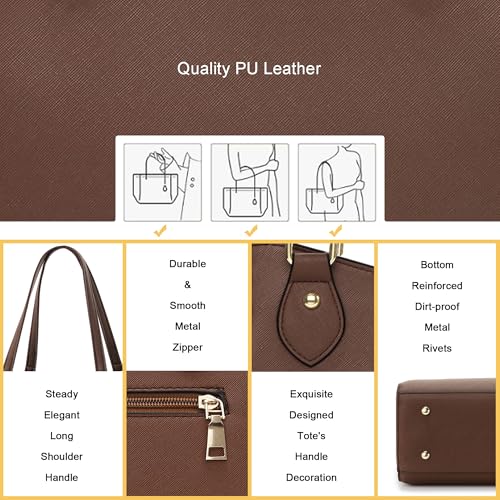 • Multi-pocket Design: Two Interior Compartments,Two Interior Zippered Pocket and Two Slip Pockets,A Exterior Back Pockets. This Womens Purses has Spacious Interior fits 13'' laptop, iPad, cell phone, cosmetics, books, wallet and more.