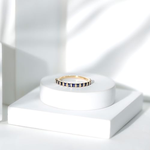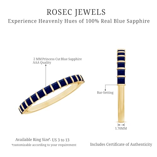 Certified Sapphire Half Eternity Band, AAA Quality, Natural Blue Sapphire Princess Cut Wedding Ring - Ready to Gift 1