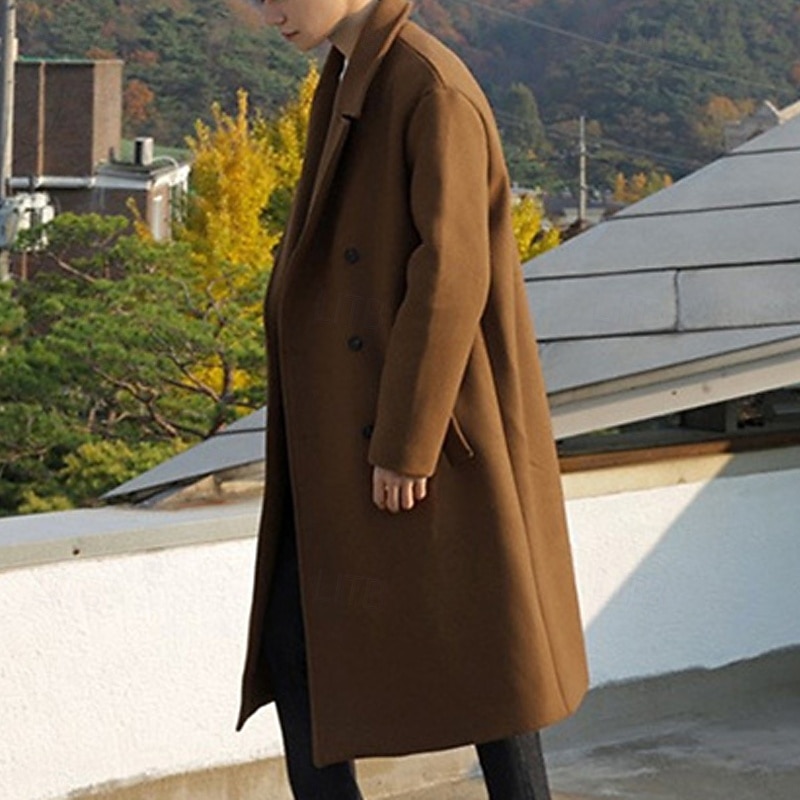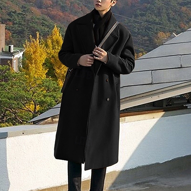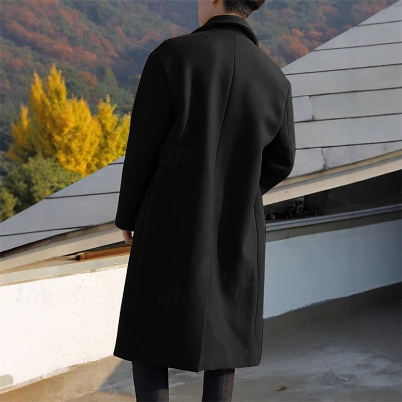 More information about Men's Overcoat Trench Coat Long Trench Coat Vacation Daily Fall & Winter Polyester Thermal Warm Windproof Outerwear Clothing Apparel Fashion Classic Plain Pocket Lapel Double Breasted