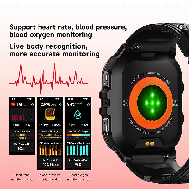 696 Smart Watch Fitness Tracker ECG PPG Bluetooth Call Reminder Android iOS IP67 44mm 1.96 17