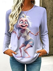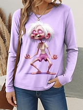 More information about Women's T Shirt Graphic Cartoon Gradient Vintage Stylish Classic Long Sleeve Crew Neck Regular Tops Daily Print Pink Purple Khaki Gray Spring Fall Winter