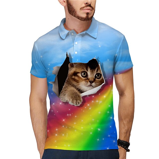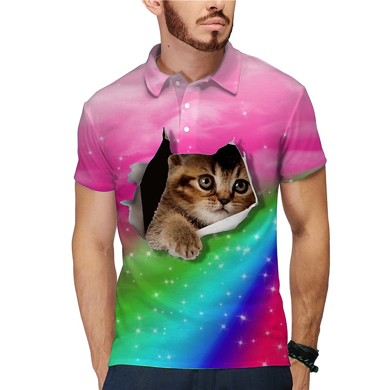 More information about Men's Cat Polo Shirts Golf Shirt Short Sleeve Polo Shirts Collared Shirts Casual Funny Streetwear Vacation Wear Party Outfits Buttons 3D Print Yellow Pink Blue