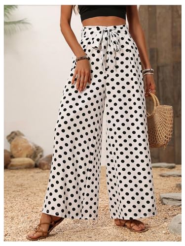 • Design: Polka dots, bow belted, elastic waist, wide leg pants, palazzo pants, casual style, vintage pants