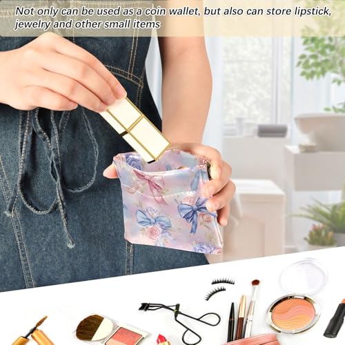 Coin Purse for Women Watercolor Bow Rose Coin Pouch Change Holder PU Leather Mini Wallet Portable Coin Bag Money Pocket 6